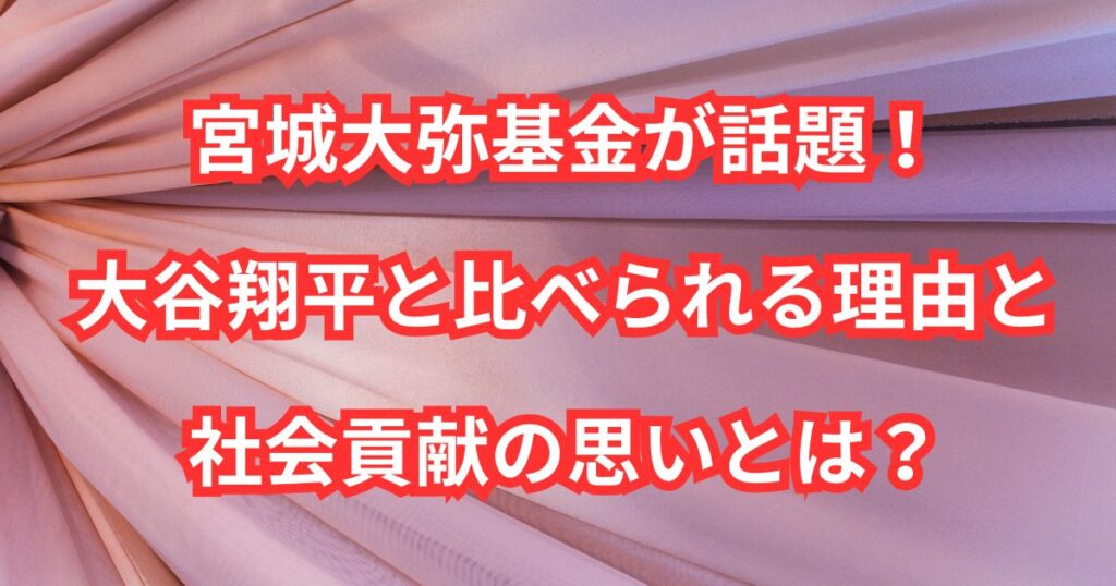 宮城大弥さんの基金活動が話題になっています。 なぜ宮城大弥さんの基金は多くの人の注目を集めているのでしょうか。 そして、なぜ大谷翔平さんと比べて語られることがあるのでしょうか。 今回は宮城大弥さんの基金の内容や、大谷翔平さんと並べて語られる... -