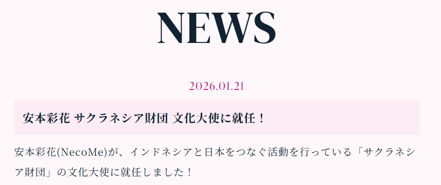安本彩花さんは2026年1月にサクラネシア財団の文化大使就任を発表しました。