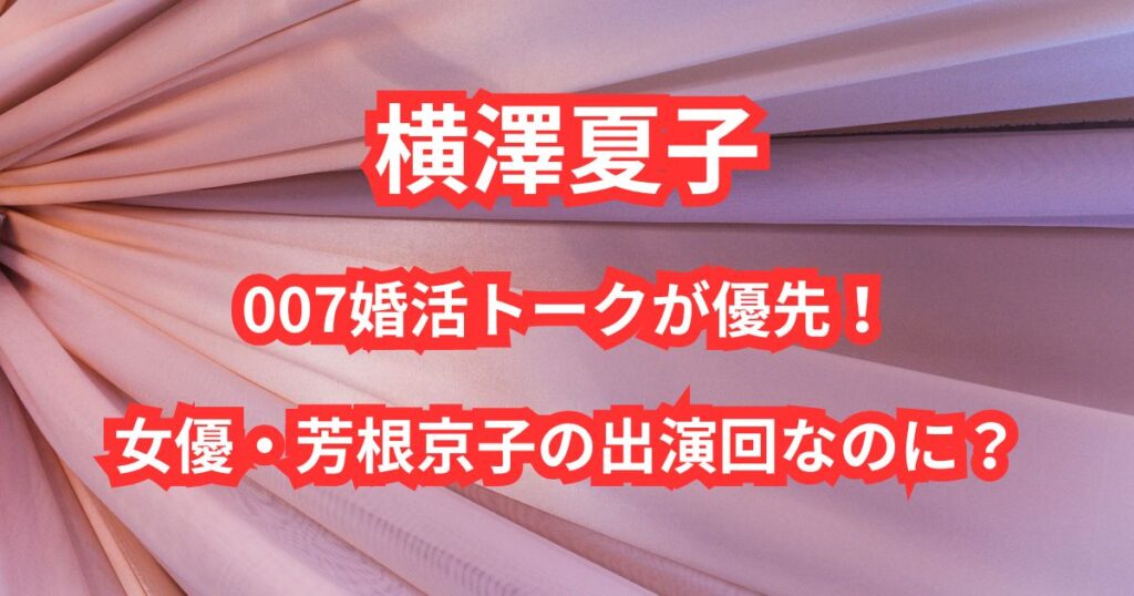 横澤夏子007婚活トークが優先!女優・芳根京子の出演回なのに?