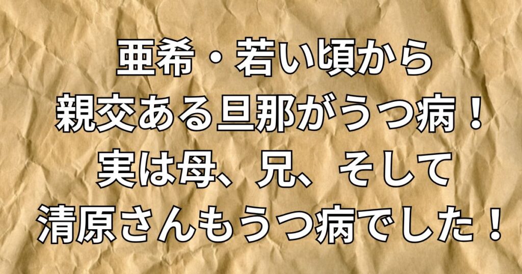 亜希若い頃から親交ある旦那がうつ病!実は母、兄、そして清原さんもうつ病でした!