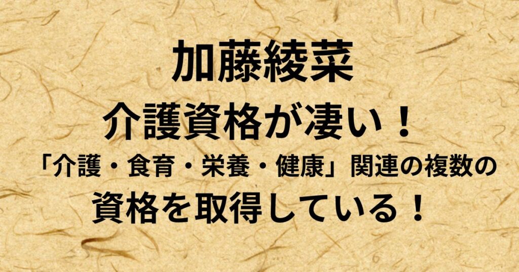 加藤綾菜さんは、介護・食育・栄養・健康関連の複数の資格を取得している注目の人物です。 そんな加藤綾菜さんですが、なぜこれほど多くの資格を取得したのでしょうか? また、これらの資格は本当に凄いものなのでしょうか? 介護を通じて乗り越えてきたこ... -