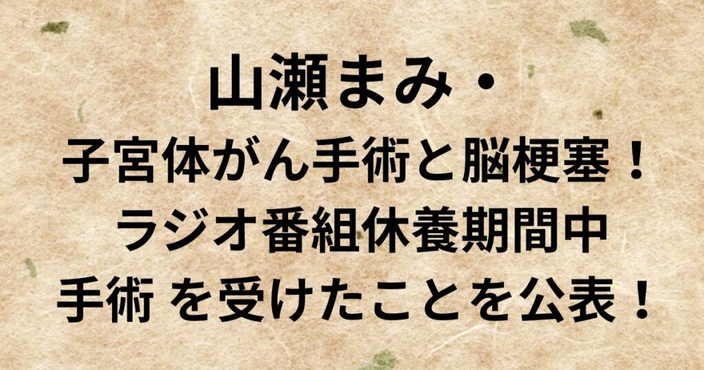 山瀬まみ・子宮体がん手術と脳梗塞!ラジオ番組休養期間中手術 を受けたことを公表!