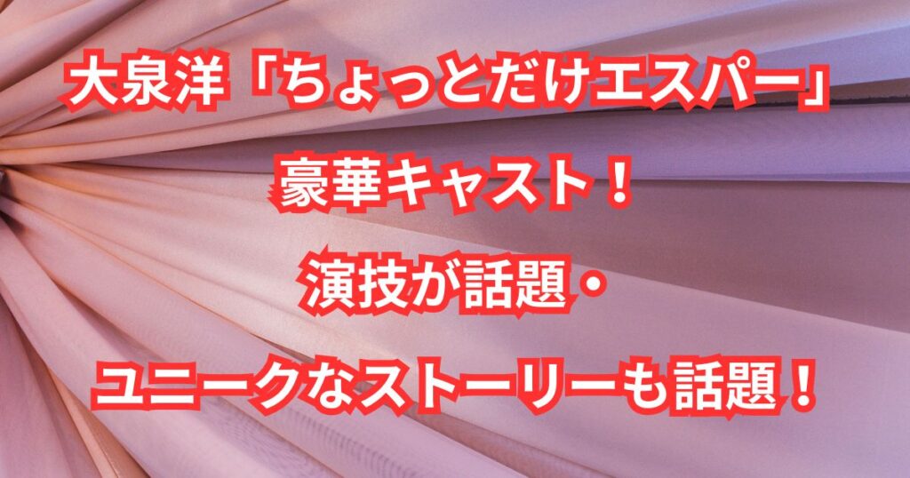 ユーモアと演技力で知られる大泉洋さん。 そんな大泉洋さんですが、新ドラマ「ちょっとだけエスパー」で豪華キャストと共演し、話題を呼んでいるのでしょうか。 大泉洋さんの演技力が再び注目を集めているようです。 「ちょっとだけエスパー」のユニークな... -