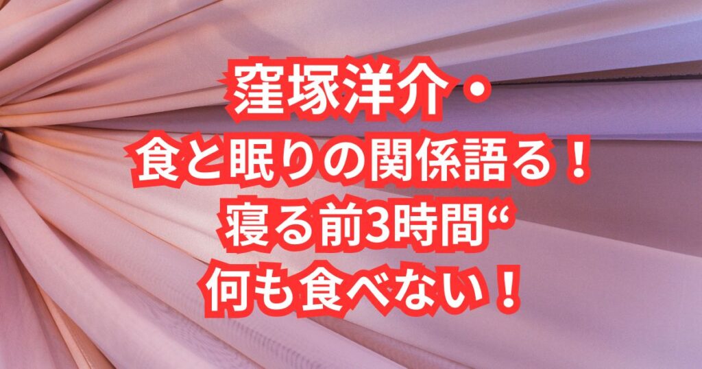 窪塚洋介・食と眠りの関係語る!寝る前3時間“何も食べない!