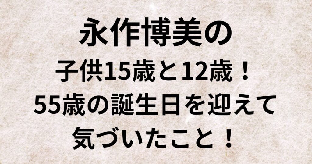 女優として輝かしい活躍を続ける永作博美さん。 そんな永作博美さんですが、55歳の誕生日を迎え、子育てを通じて気づいたことがあるのでしょうか。 永作博美さんの子供たちは現在15歳と12歳になっているそうです。 子育てを通じて、永作博美さんはどのよう...