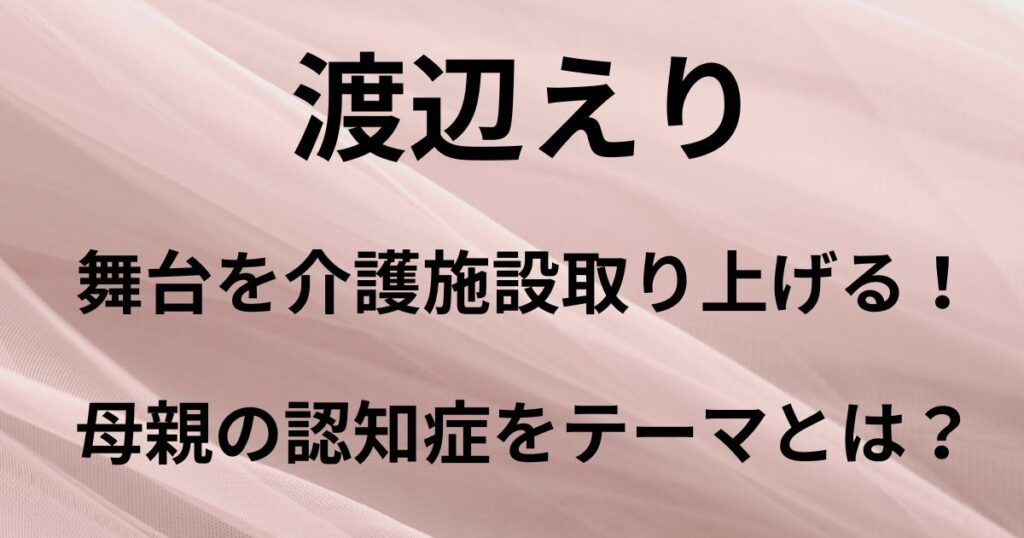 渡辺えり舞台を介護施設取り上げる!母親の認知症をテーマとは?