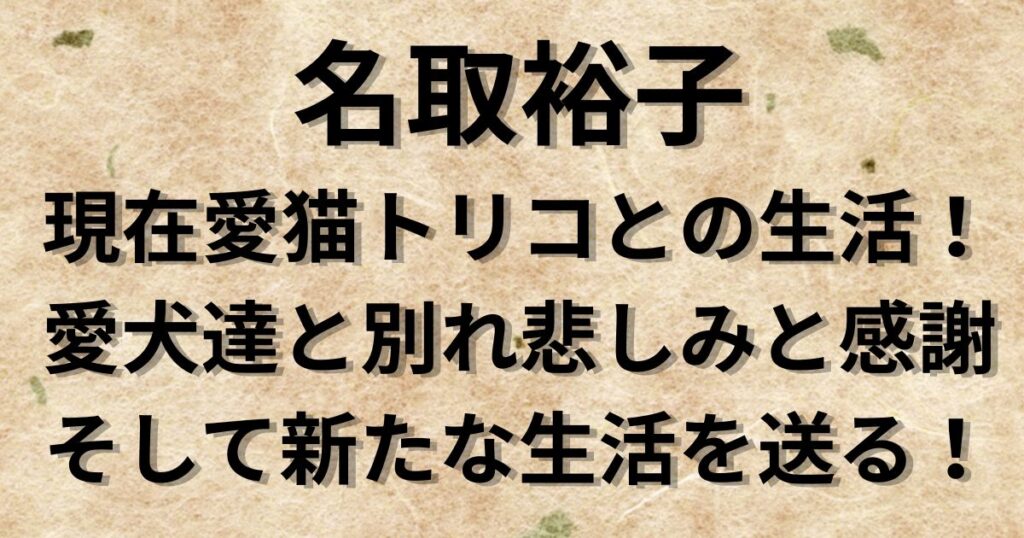 名取裕子現在愛猫トリコと生活!愛犬達と別れ悲しみと感謝そして新たな生活を送る!