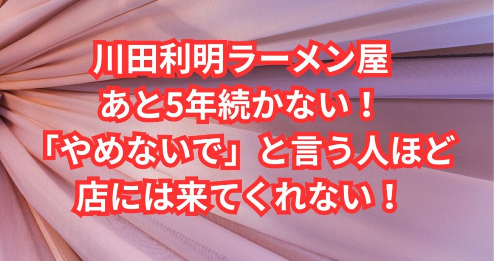 川田利明ラーメン屋あと5年続かない!「やめないで」と言う人ほど店には来てくれない!