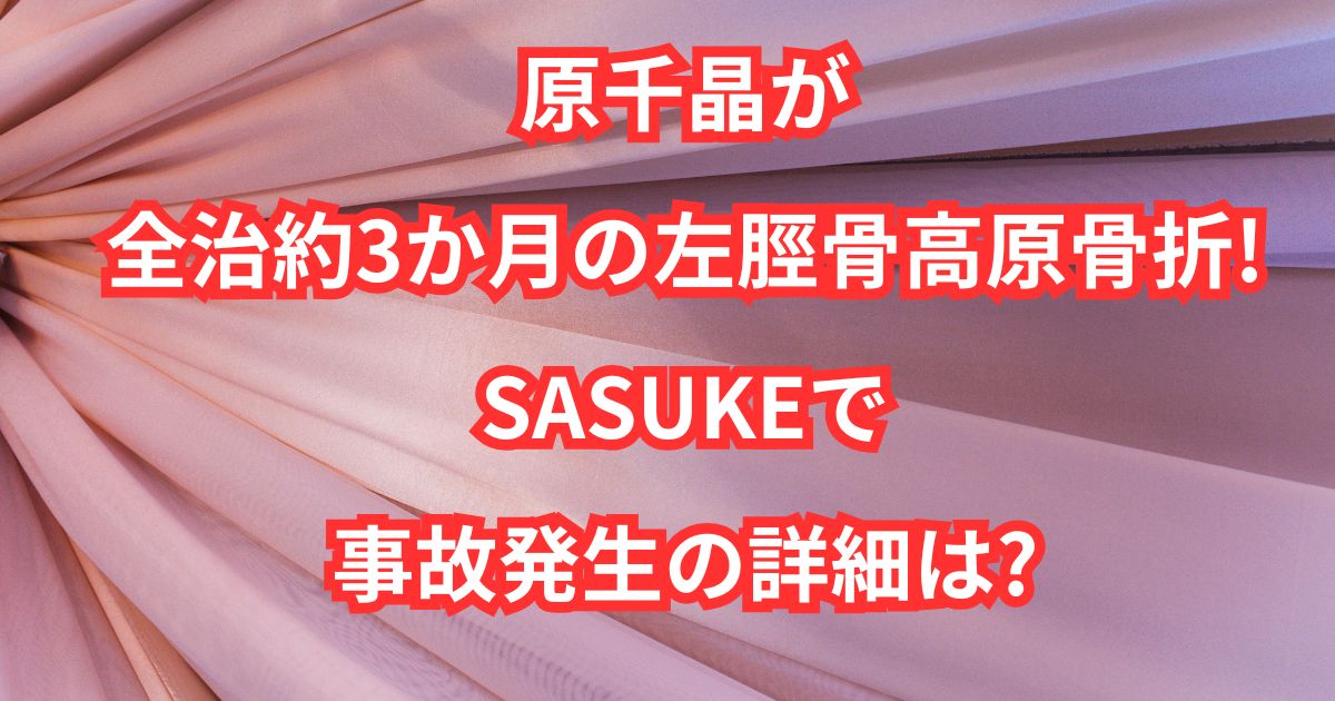 原千晶さんは、SASUKEを再現した施設での取材中に左脛骨高原骨折を負い、全治約3か月の診断を受けられました。