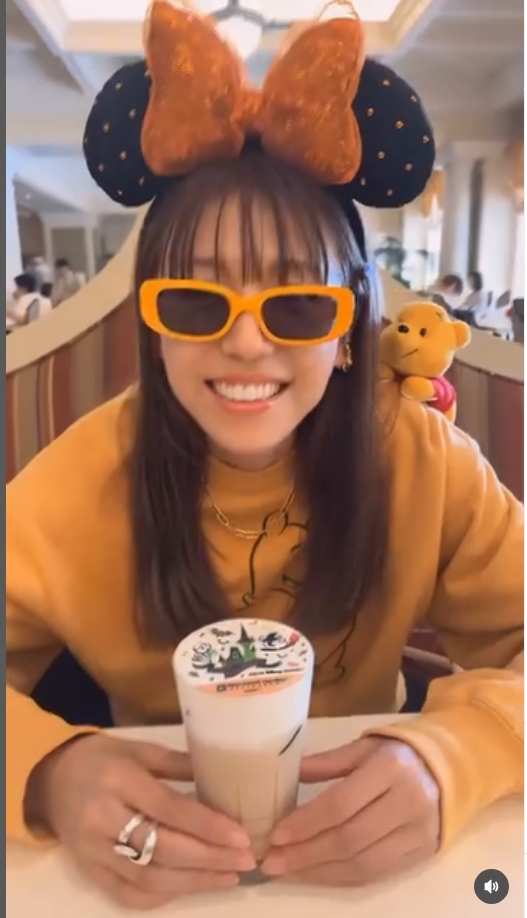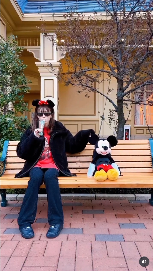 サングラスにカチューシャをつけて、一人でディズニーランドを満喫したそうです。