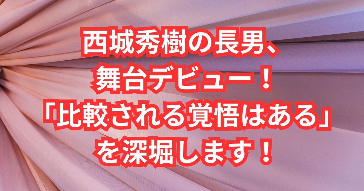 西城秀樹の長男舞台デビュー!「比較される覚悟はある」を深堀します!