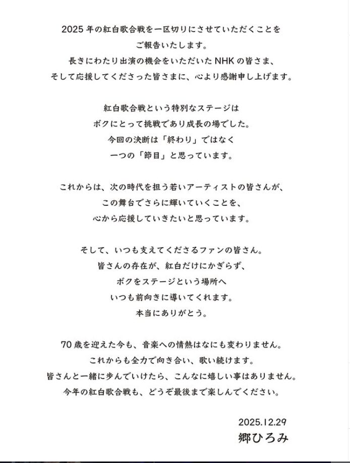 この見出しの結論として、郷ひろみさんの紅白一区切り発言は紅白出演に限った節目であり、前向きな選択だったようでした。