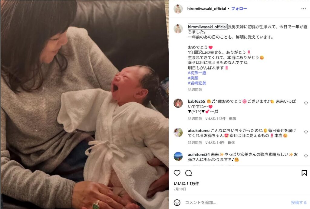 2024年から2025年にかけて、岩崎さんはInstagramで孫との幸せな時間を頻繁に投稿しています。