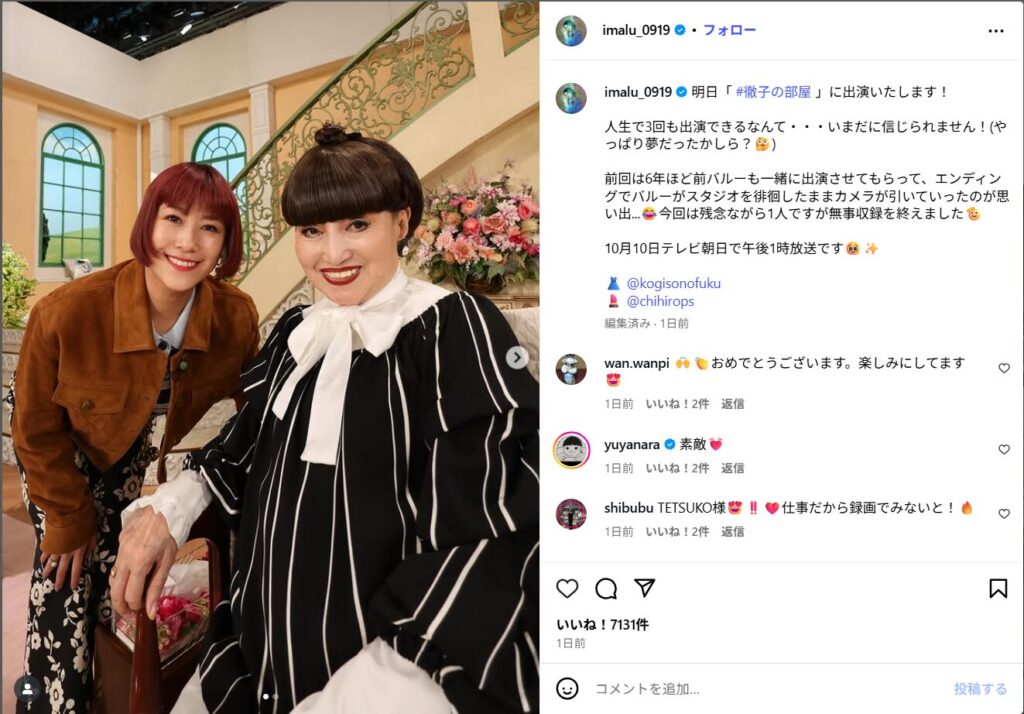 また、IMALUさんは自身のSNSでさんまさんとの日常的なエピソードを時々紹介しています。
