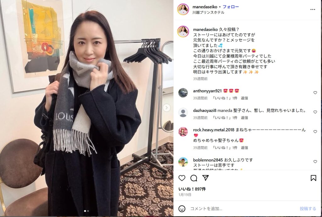 - 彼女の公式Instagramアカウント (@manedaseiko) では、活動報告・ライブ報告・ファンとの交流的投稿は多数確認できます。 出典:ENCOUNT+3Instagram+3Instagram+3