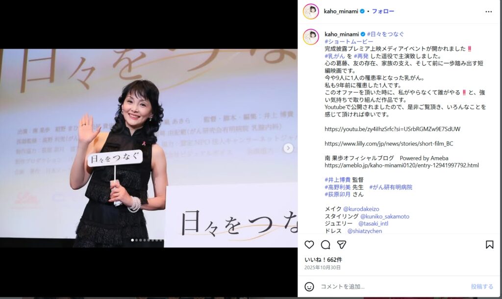 南果歩さんは2016年に乳がんと診断され治療を受け克服したと報じられています。