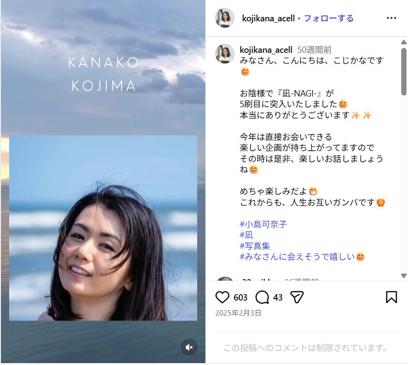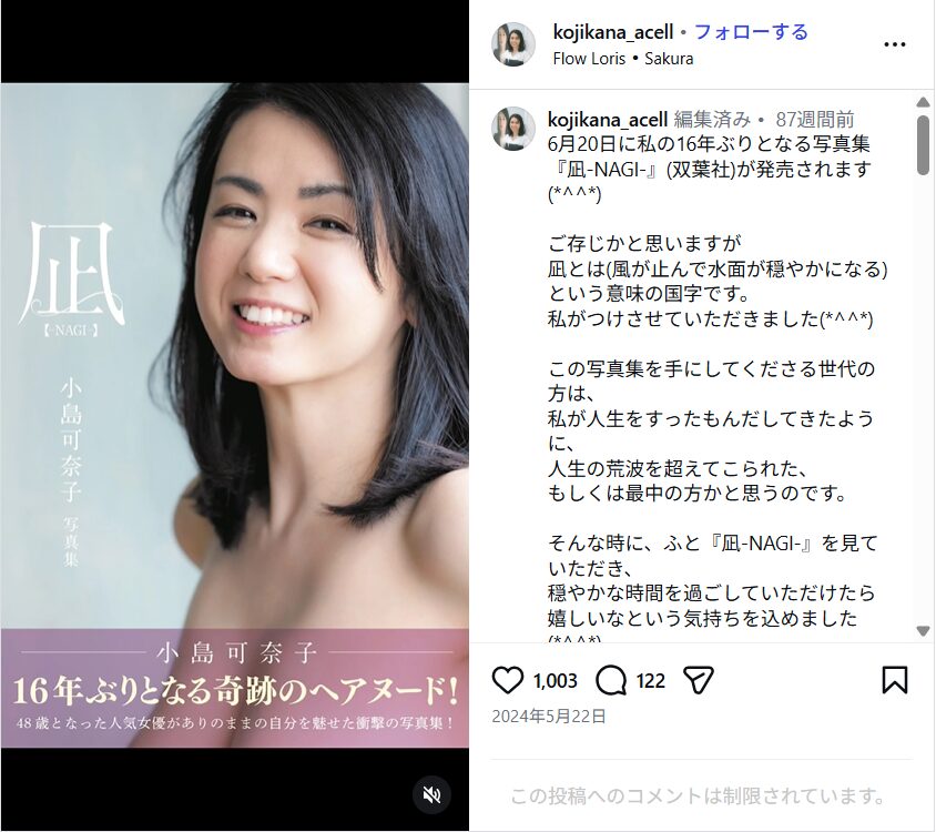 そんな小島可奈子さんですが、16年ぶりとなる写真集「凪」を48歳で発表されました。