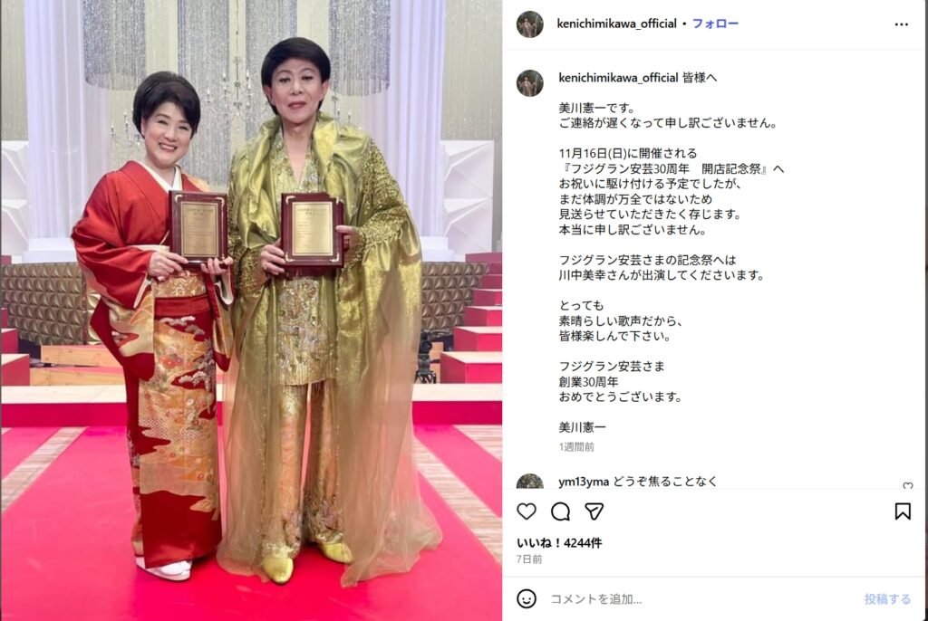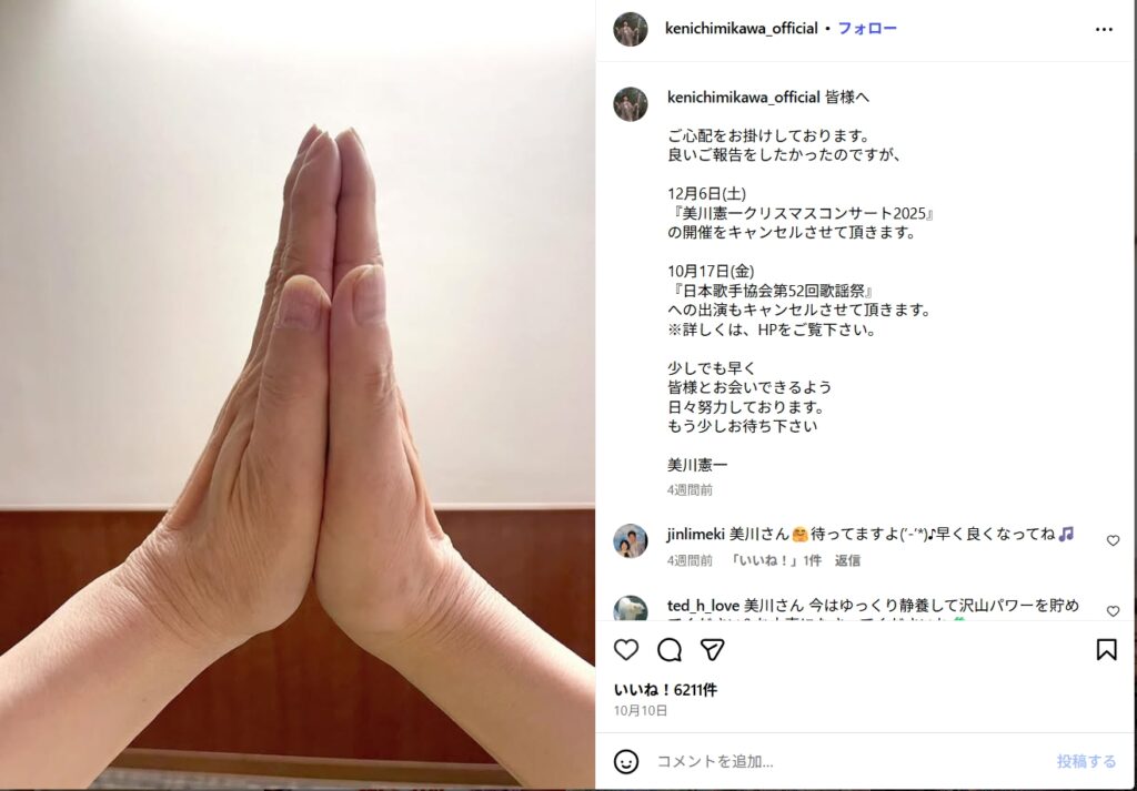 美川憲一さんの所属事務所からは「投薬治療とリハビリを継続しながら活動を行う」というコメントが発表されました。