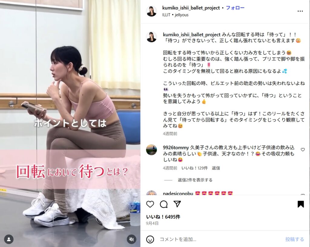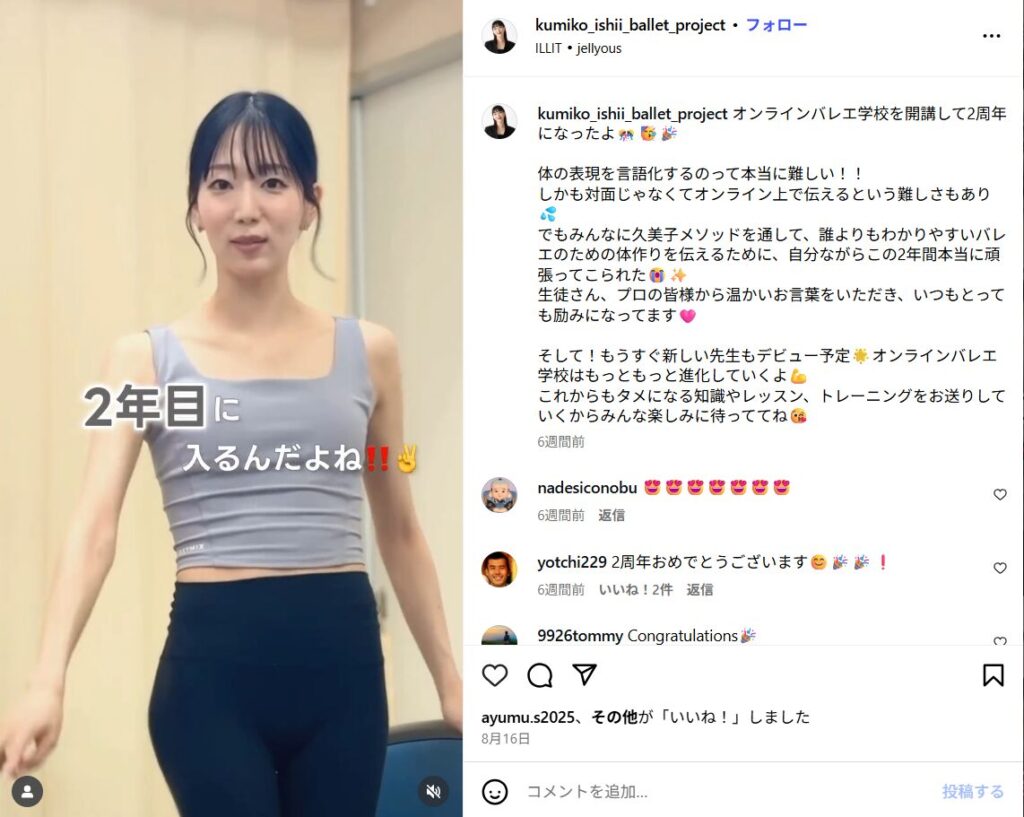 石井久美子さんは現在、バレエダンサーとしての活動に加えて、指導者としての活動も積極的に行っています。