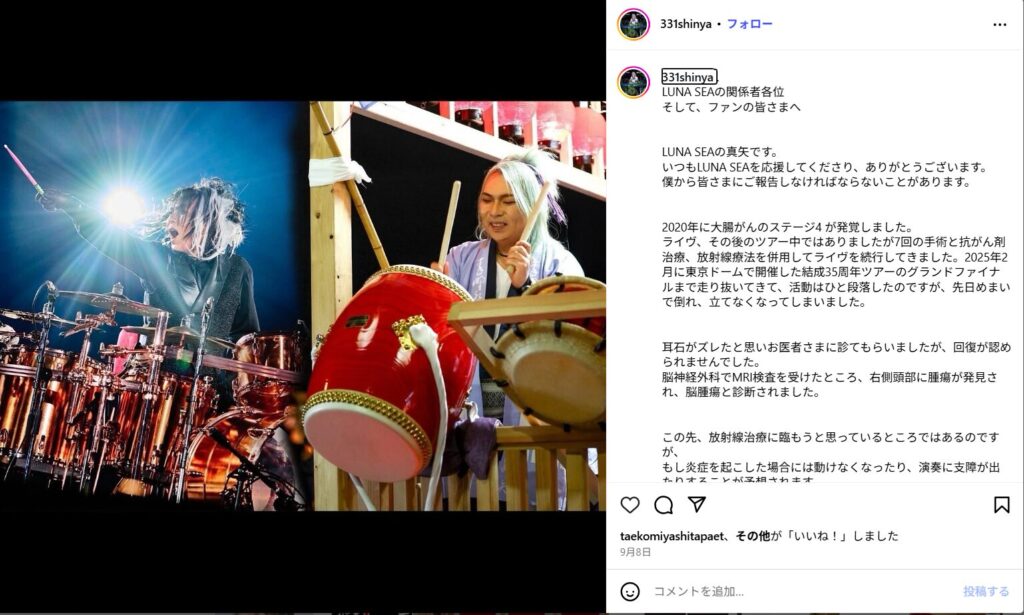 2025年11月8日・9日に予定されている「LUNATIC FEST. 2025」では、真矢さんの代わりに別のドラマー(淳士さん)が演奏することが発表されています。