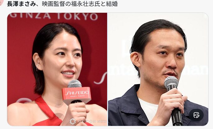 長澤まさみさんは「この度、映画監督の福永壮志さんと入籍しましたことをご報告させていただきます。お互い支え合いながら日々の生活を大切に、これからの人生を一歩一歩丁寧に歩んでいこうと思っています」とコメントされています。
