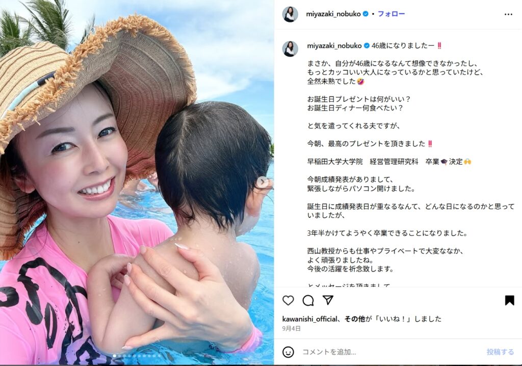 今回は、宮崎宣子さんの旦那さんの育休取得と、子育てに対する思いについて詳しく見ていきましょう。