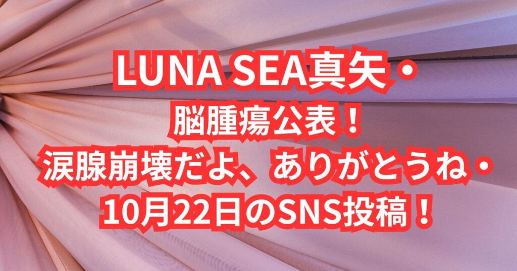 LUNA SEA真矢・脳腫瘍公表!涙腺崩壊だよ、ありがとうね・10月22日のSNS投稿!
