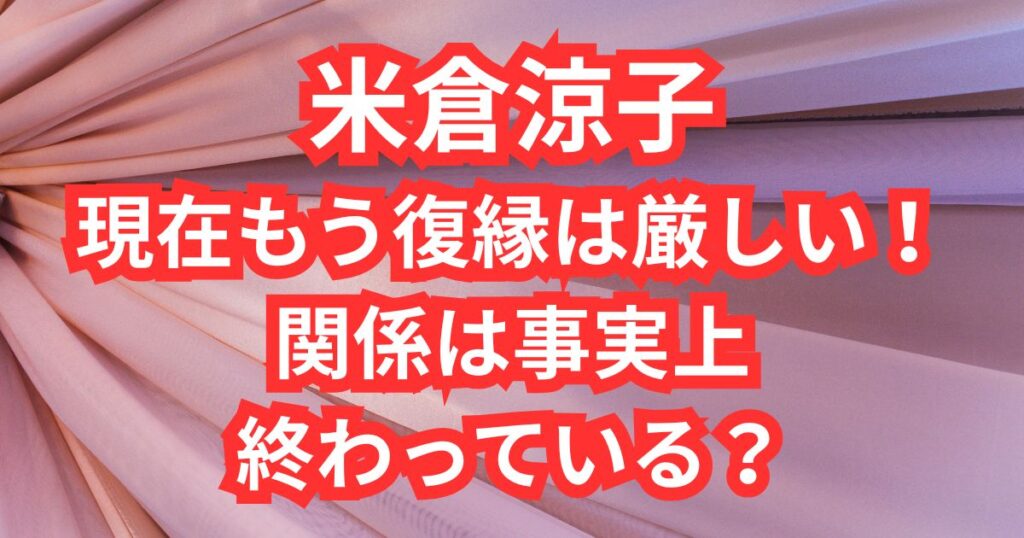 数々のドラマや映画で活躍し、日本を代表する女優として知られる米倉涼子さん。 そんな米倉涼子さんですが、現在パートナーとの復縁は厳しい状況なのでしょうか? また、二人の関係は事実上終わっているのでしょうか? 今回は、米倉涼子さんの現在の状況に...