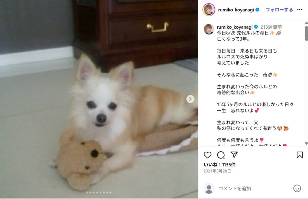ルルとの別れから49日が経った今も「毎日涙が止まらない」と心の穴を抱えているとブログで明かしています。