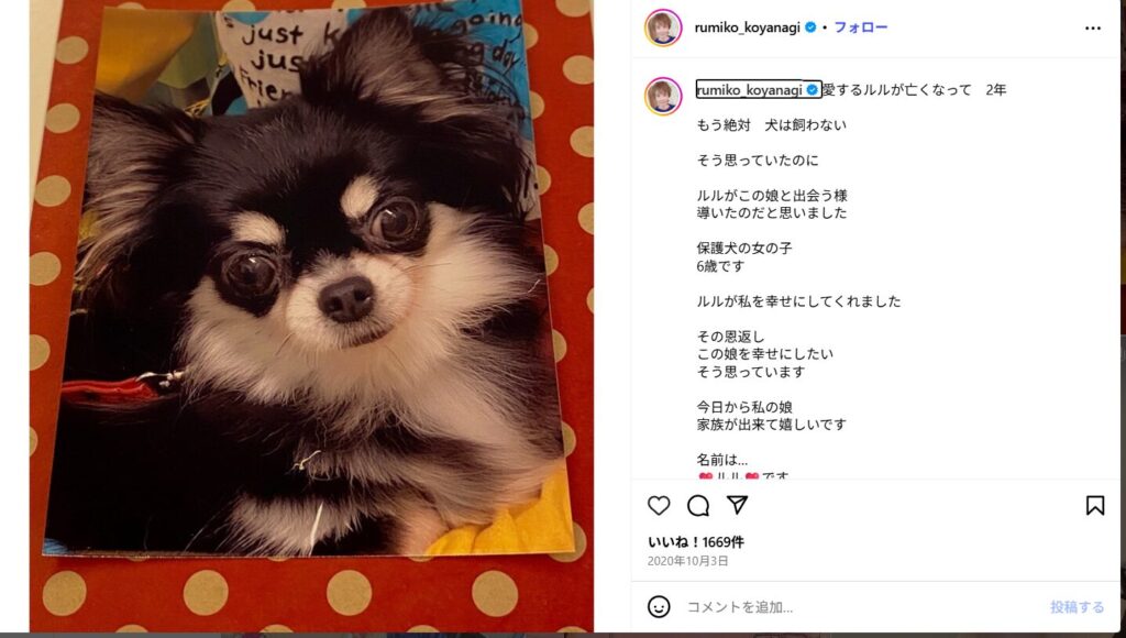 小柳さんは、先代ルルを失った後も「ルルロス」に苦しみ、そんな時に「奇跡的な出会い」で2代目の保護犬ルルを迎え入れています。