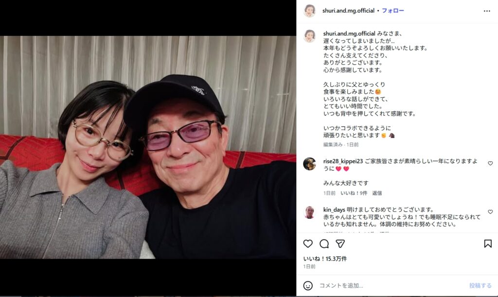二〇二六年一月十九日、趣里さんはインスタグラムで新年のあいさつとともに、父 水谷豊さんとの2ショット写真を公開しました。