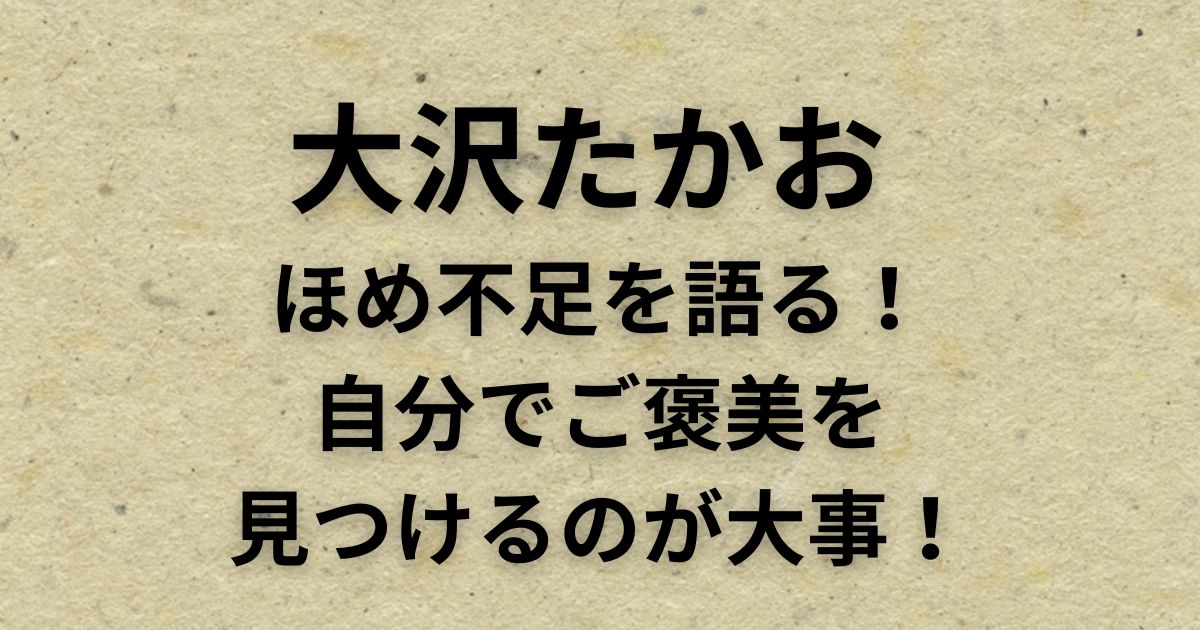 大沢たかおさんの指摘する「ほめ不足」は、現代社会において多くの人が感じている問題かもしれません。
