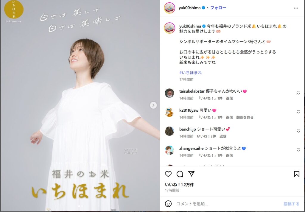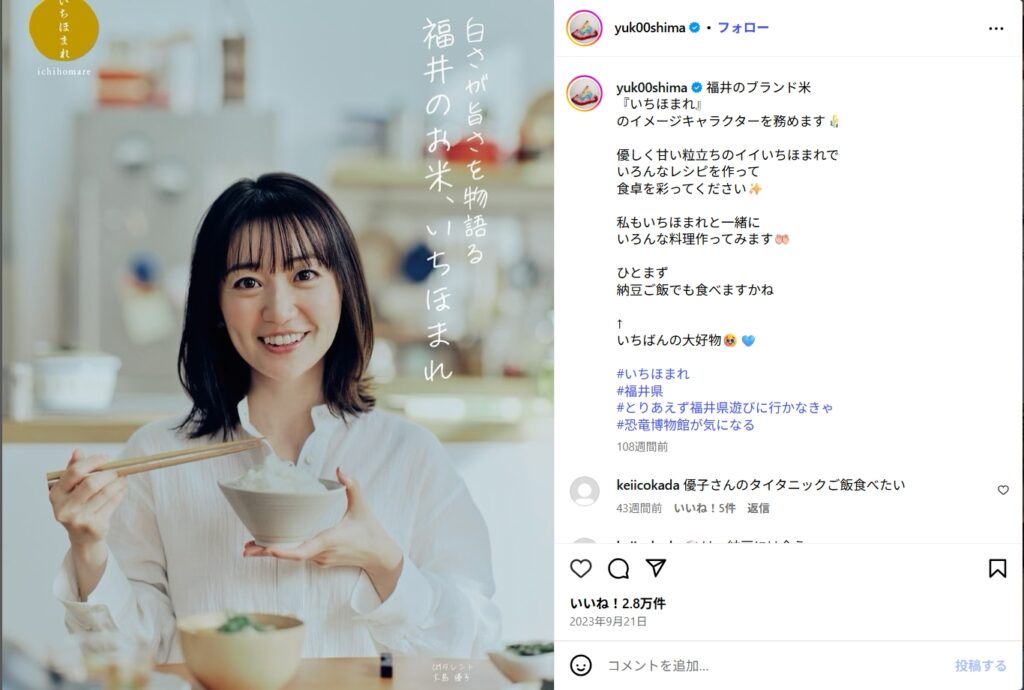 そして10月16日、都内で行われたブランド米「いちほまれ」の新CM発表会に出席した際、出産後初のPRイベントとなりました。